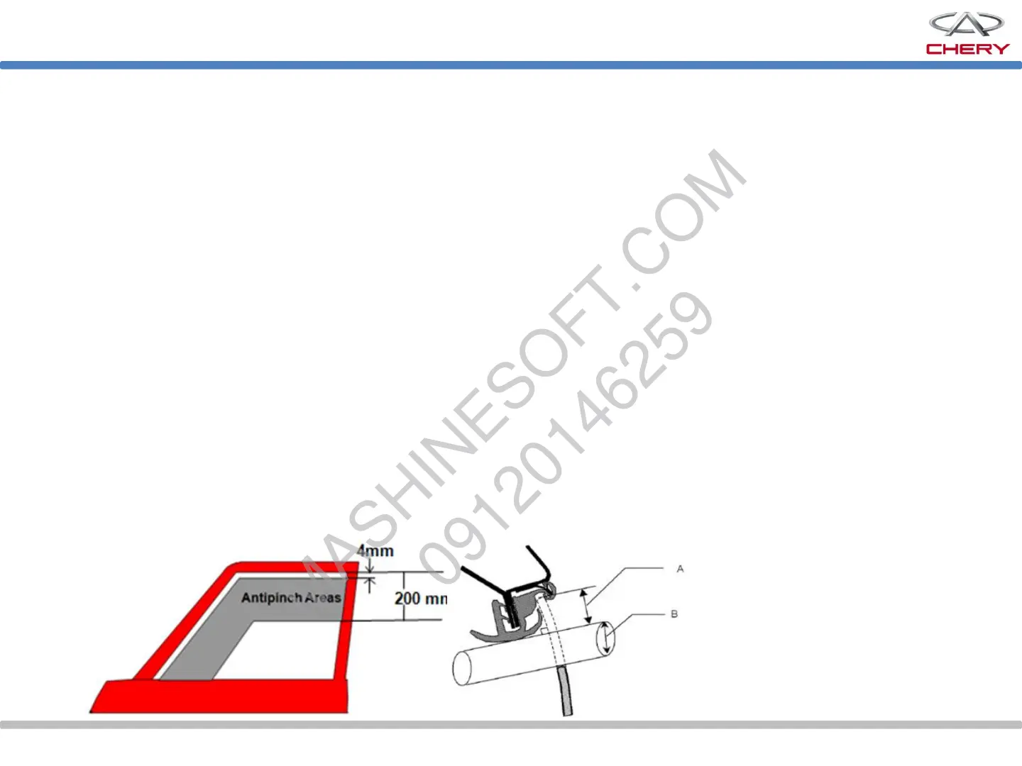 lower edge; effective area of anti-pinch :