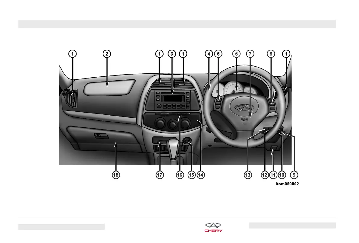 2 - Passenger Side Airbag 6 - Instrument Cluster 10 - Rear Fog Light Switch 14 - Climate Control Panel 18 - Glove Box