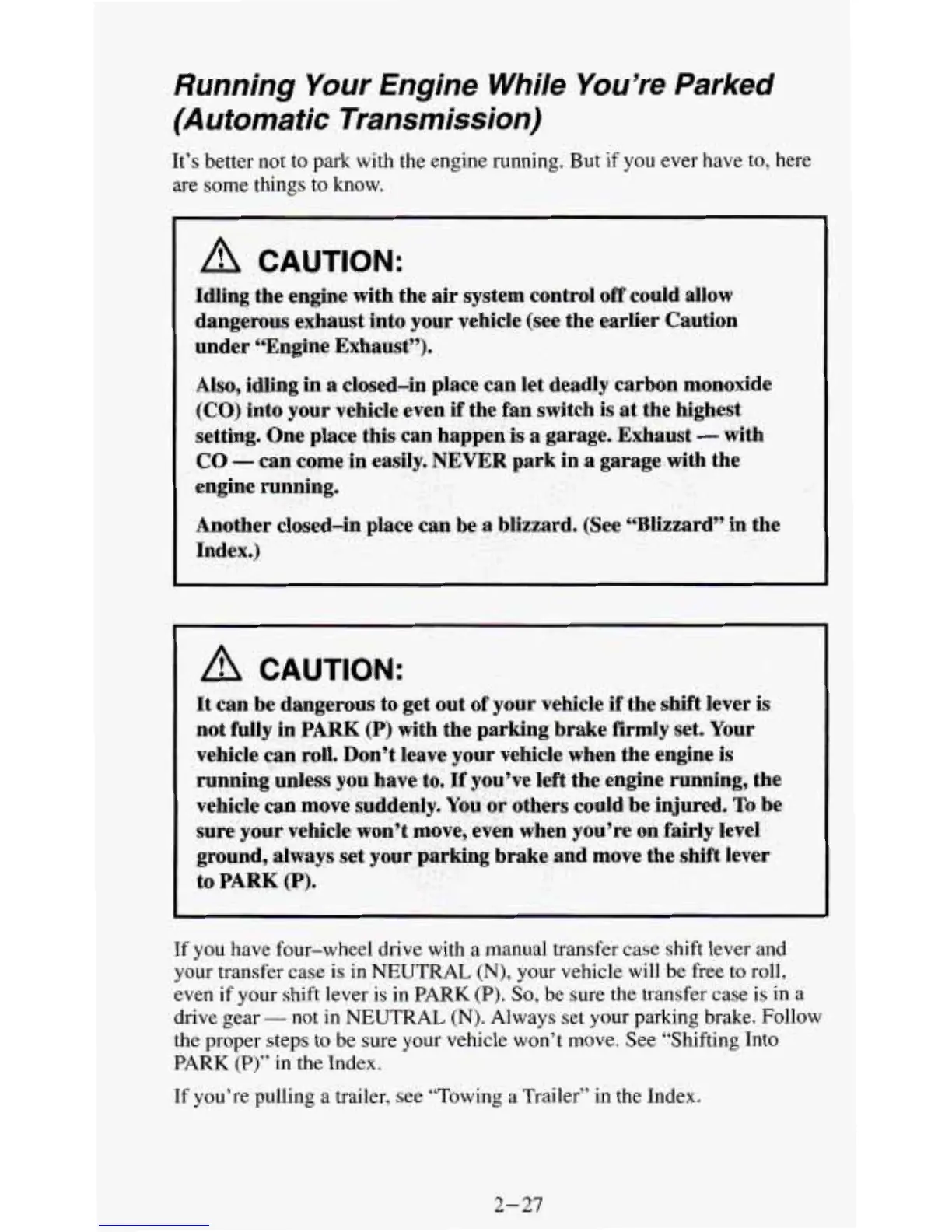 be sure your vehicle won’t move. See “Shifting Into
