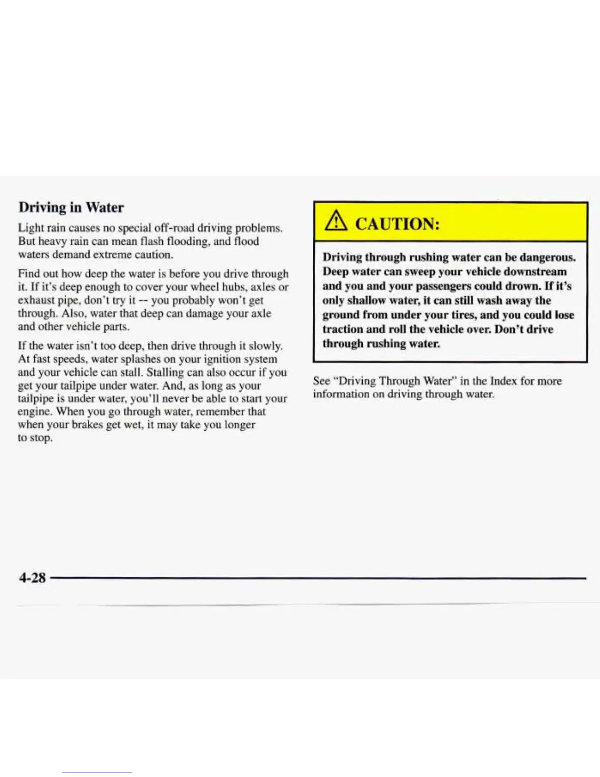 See “Driving Through Water” in the Index