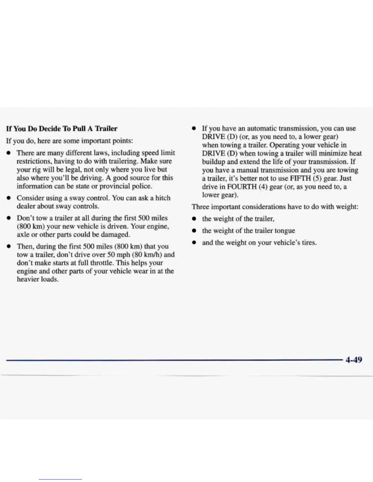 Don’t tow a trailer at all during the first