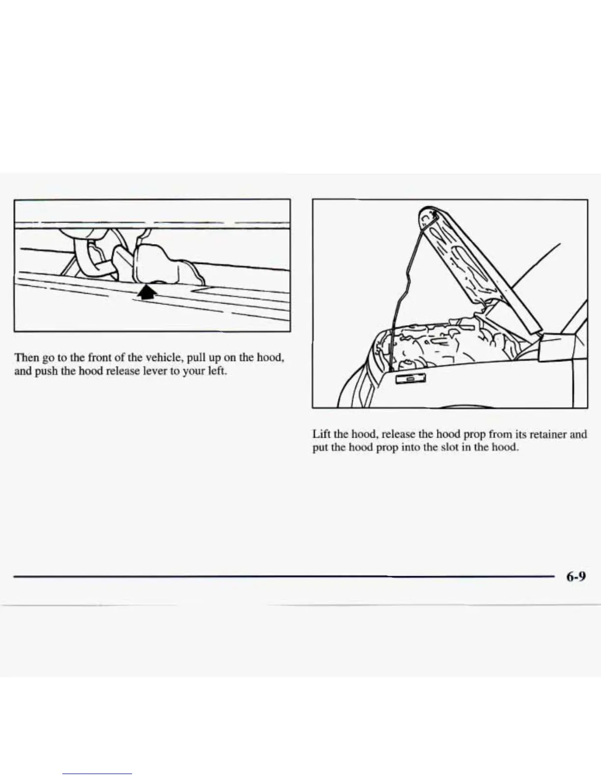 to the front of the vehicle, pull up on the hood,
