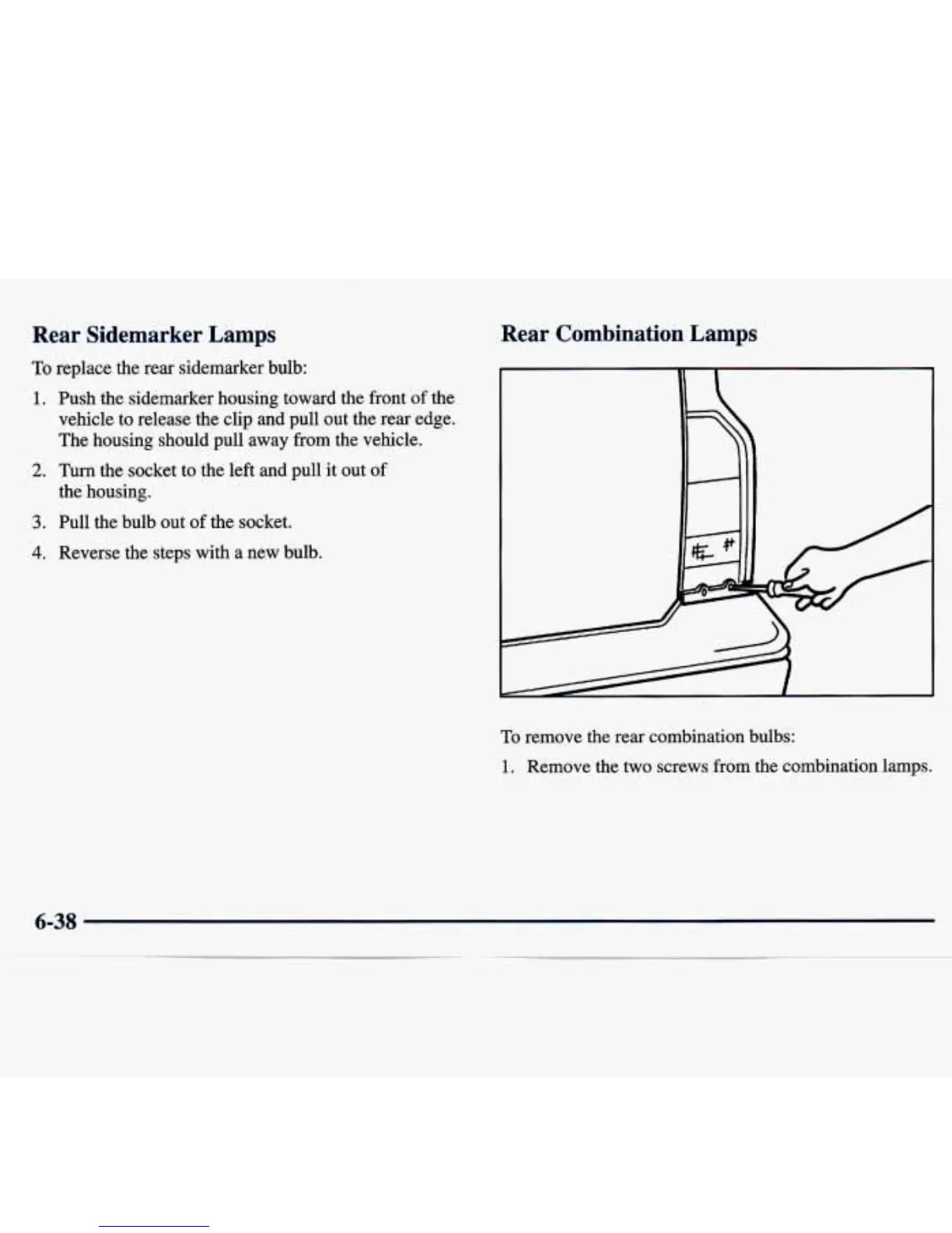 Remove the two screws from the combination lamps.
