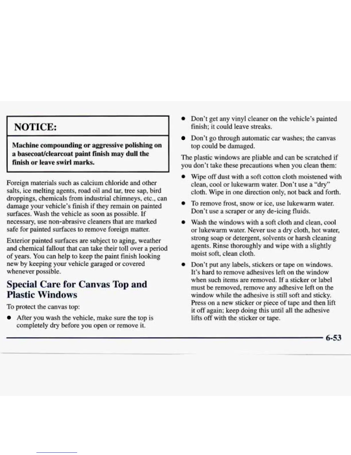 Don’t go through automatic car washes; the canvas