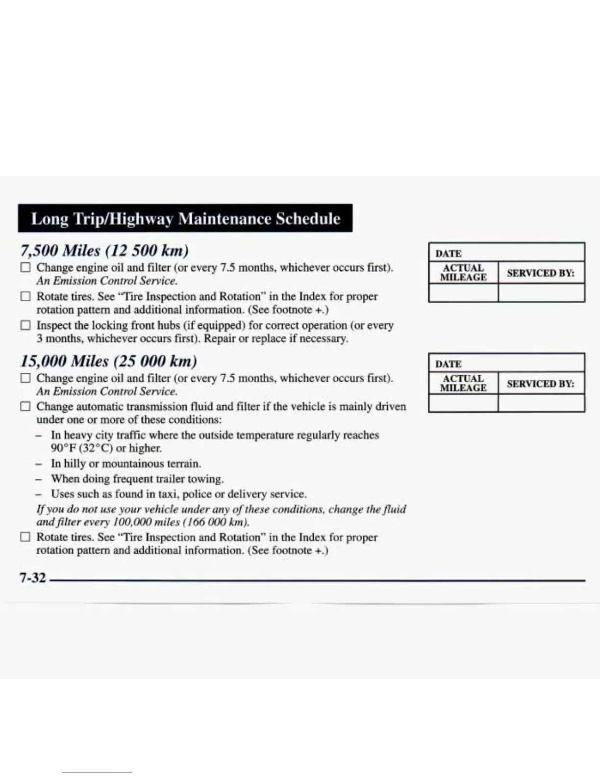 Long Trip/Highway Maintenance Schedule