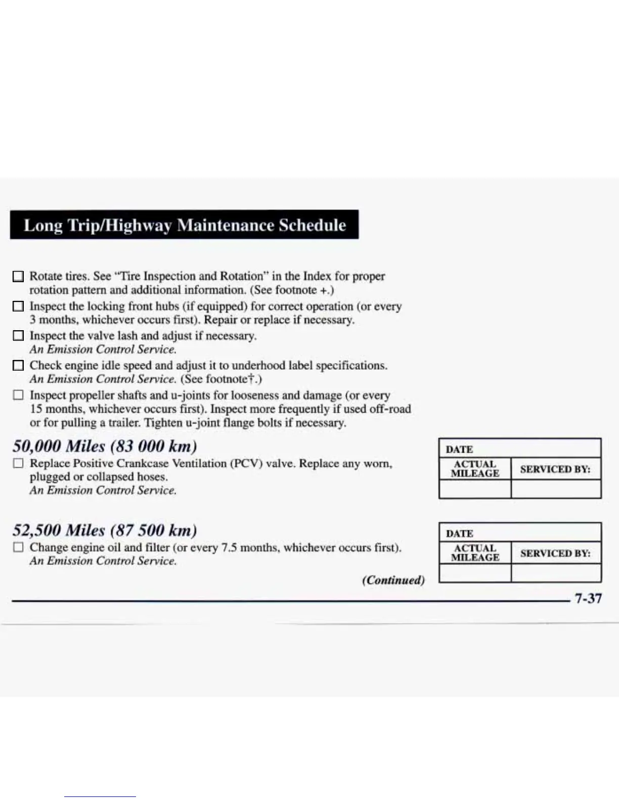 Long Tripmighway Maintenance Schedule