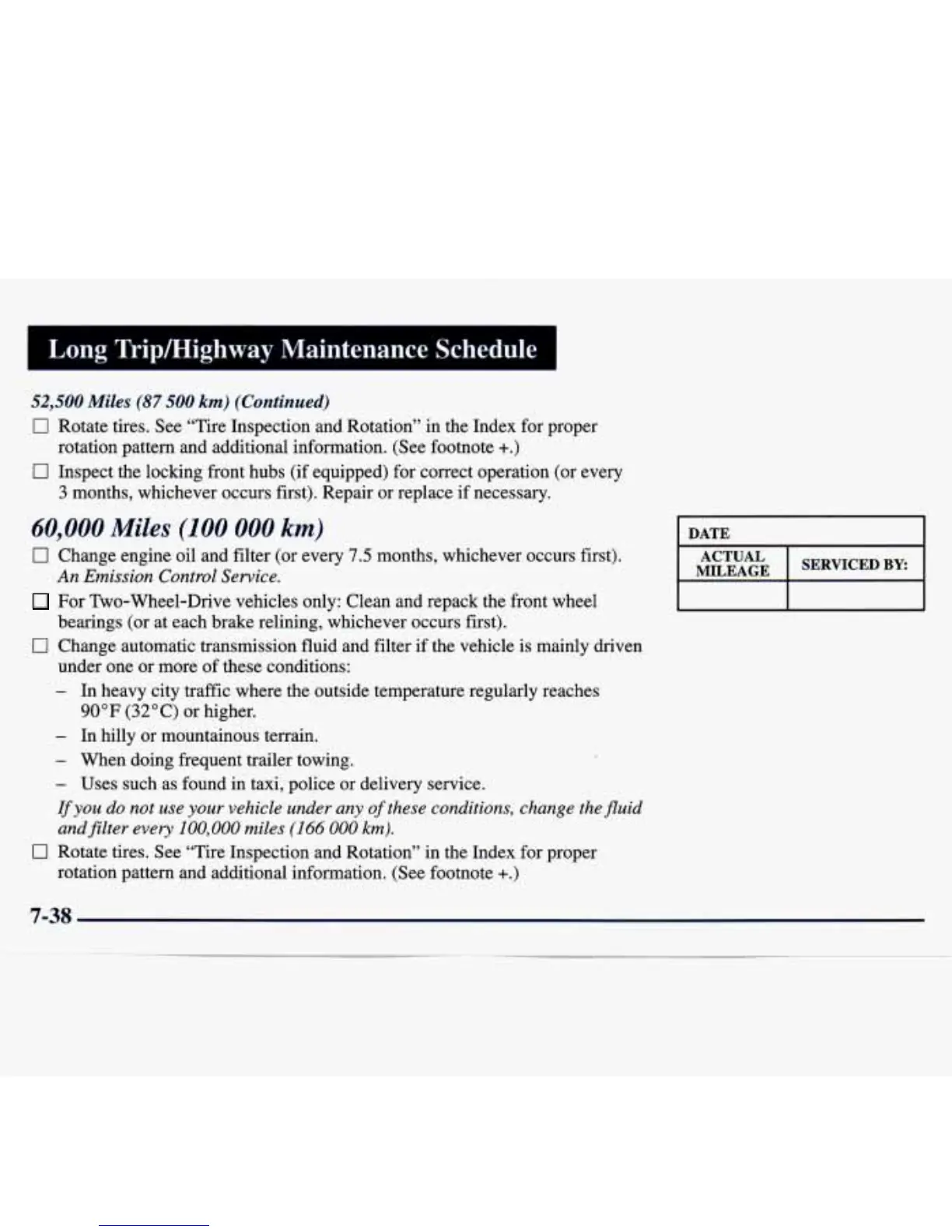 Rotate tires. See “Tire Inspection and Rotation” in the Index for proper