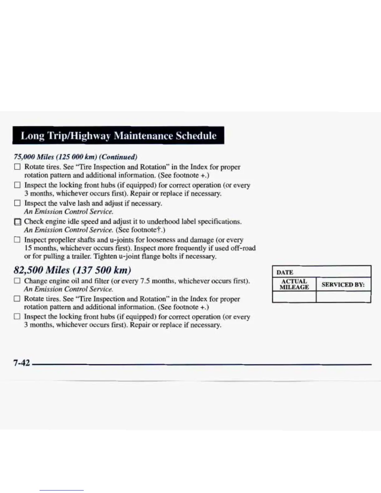 Rotate tires. See “Tire Inspection and Rotation” in the Index for proper