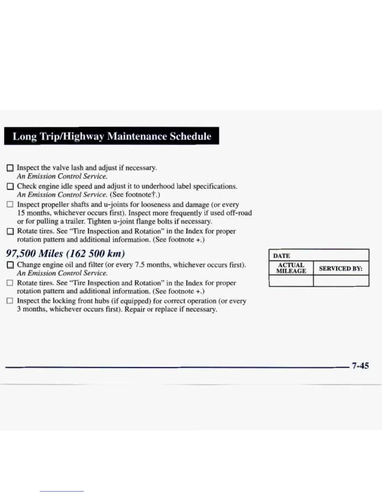 Long Tripmighway Maintenance Schedule