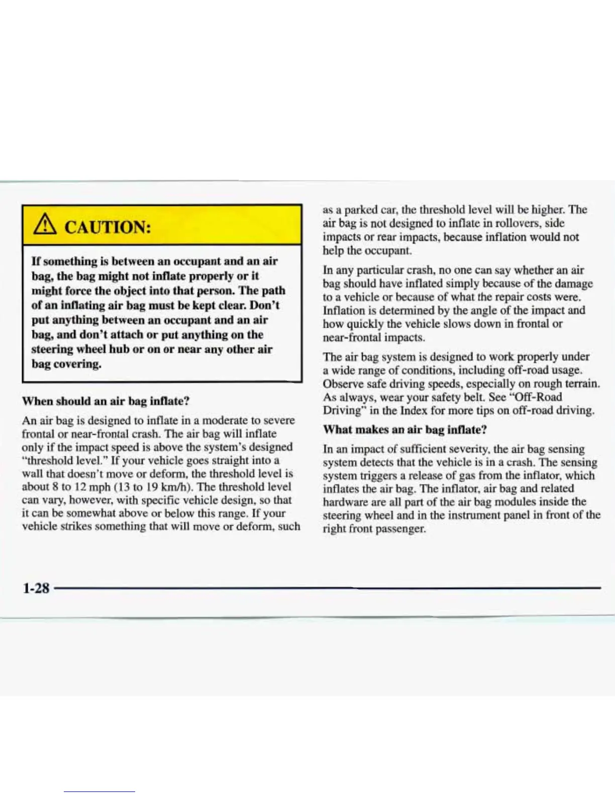 of an inflating air bag must be kept clear. Don’t