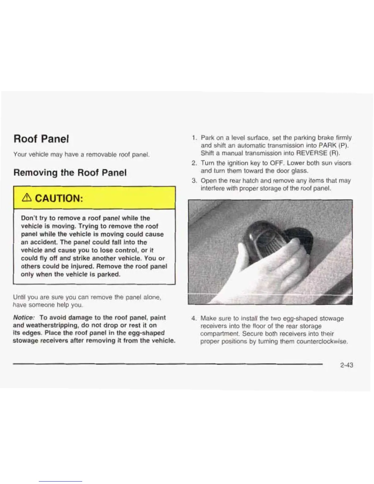others could be injured. Remove the roof pane