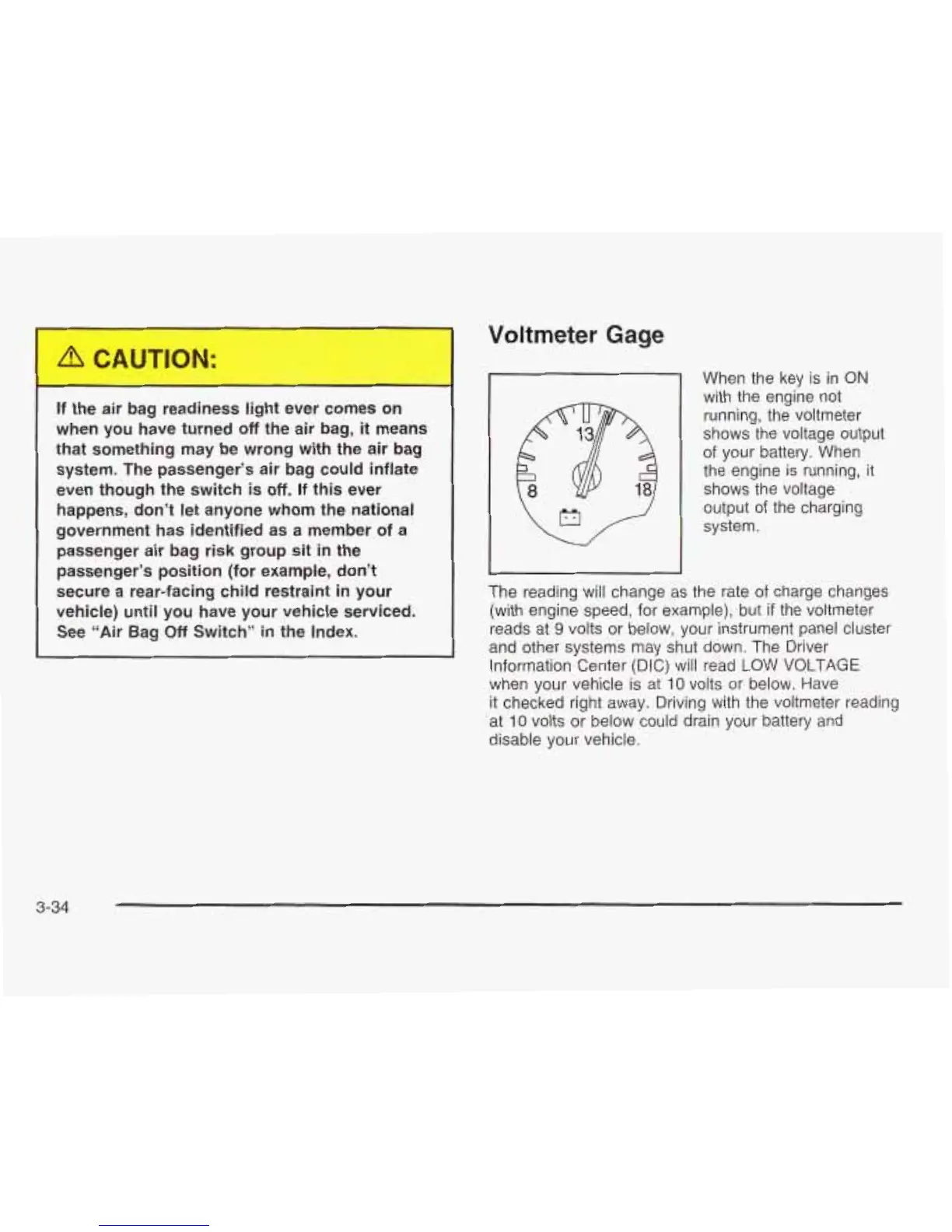 volts or below, your instrument panel cluster