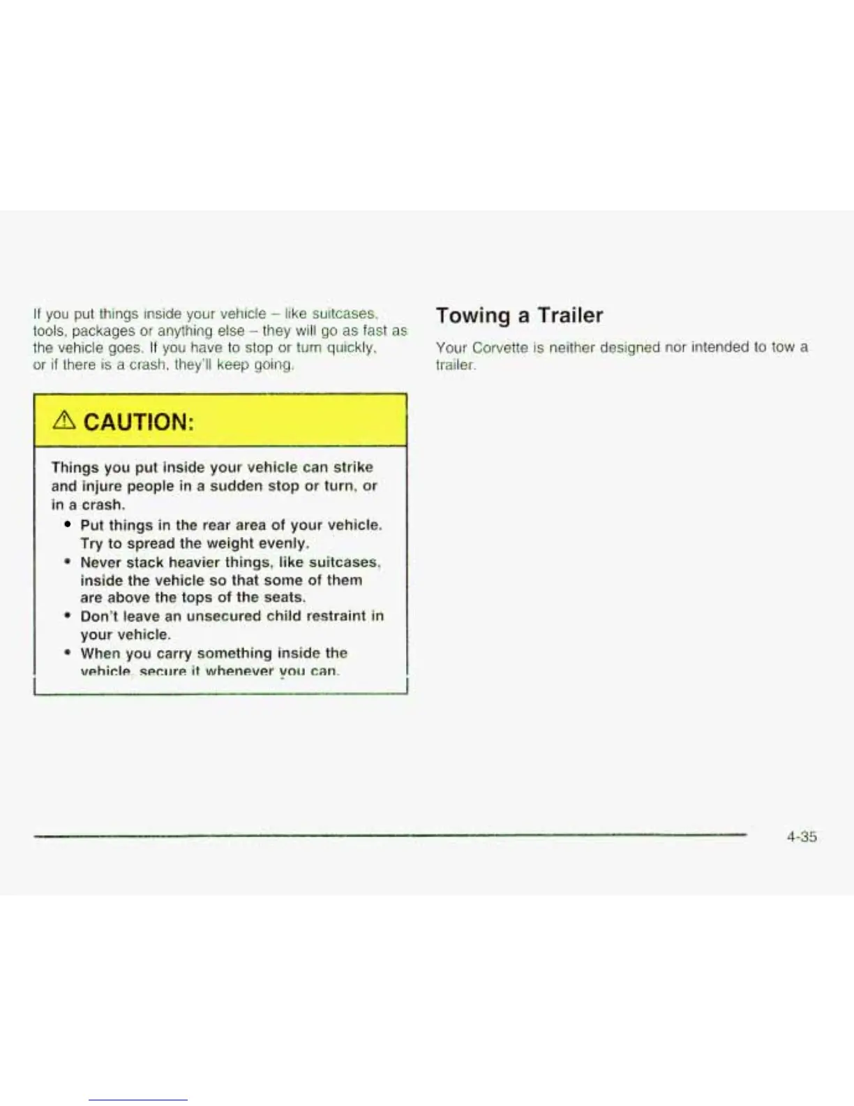 you have to stop or turn quickly, Your Corvette is neither designed nor intended to tow a