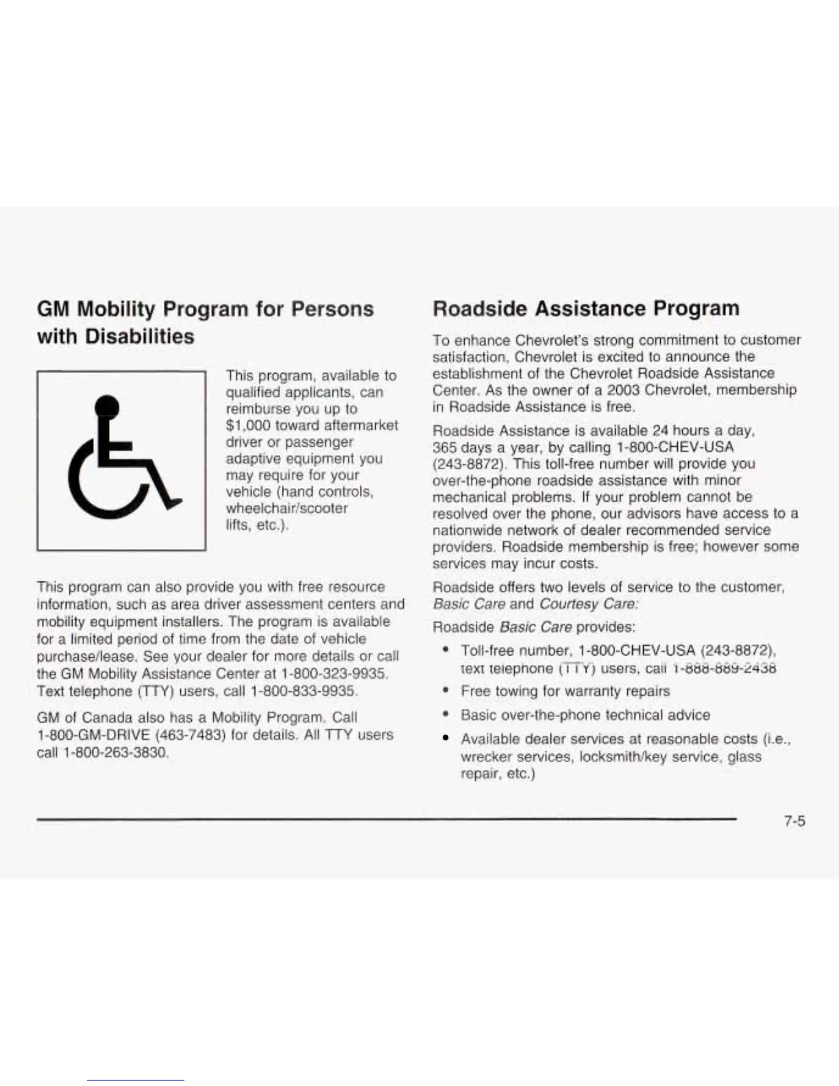 1-800-GM-DRIVE (463-7483) for details. All TTY users