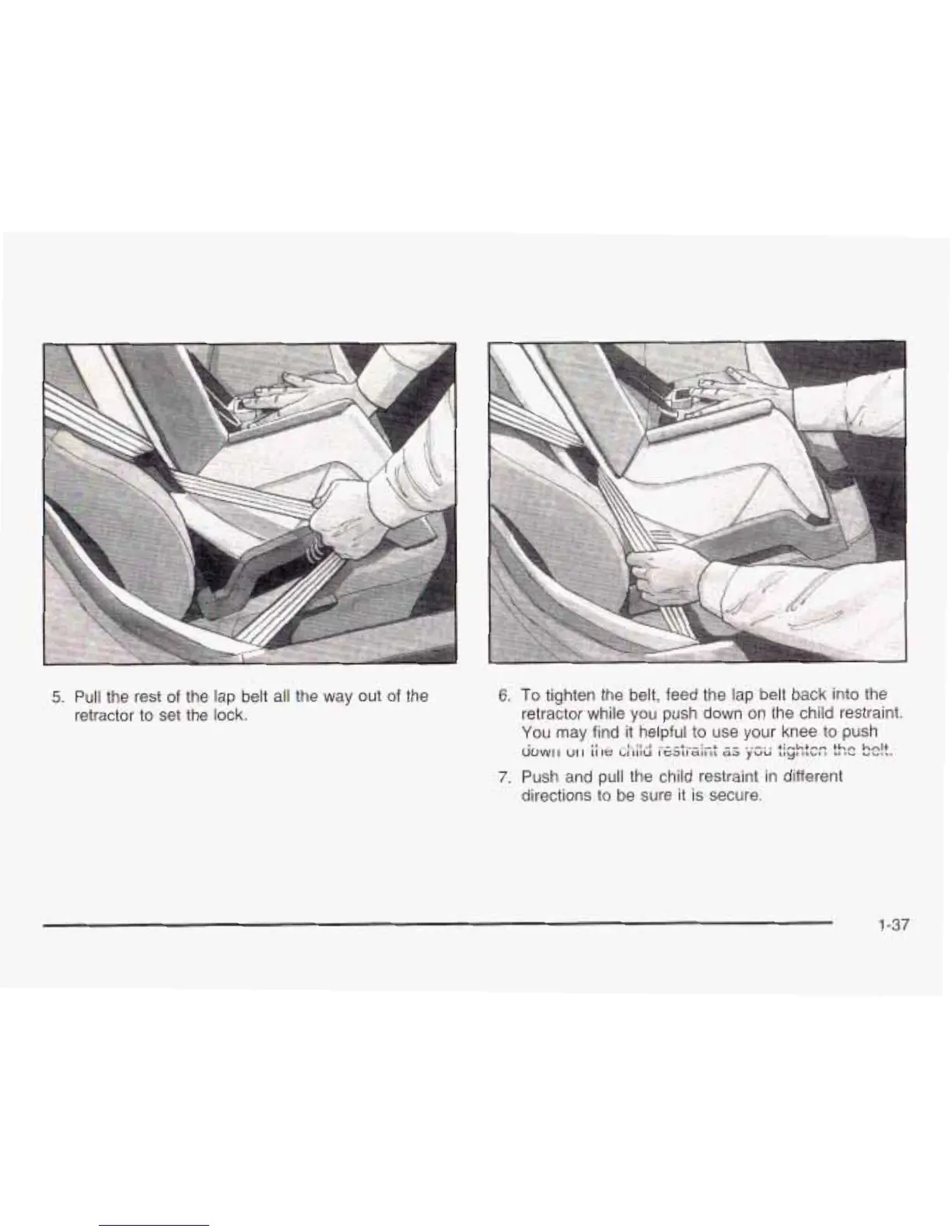 retractor while you push down on the child restraint.