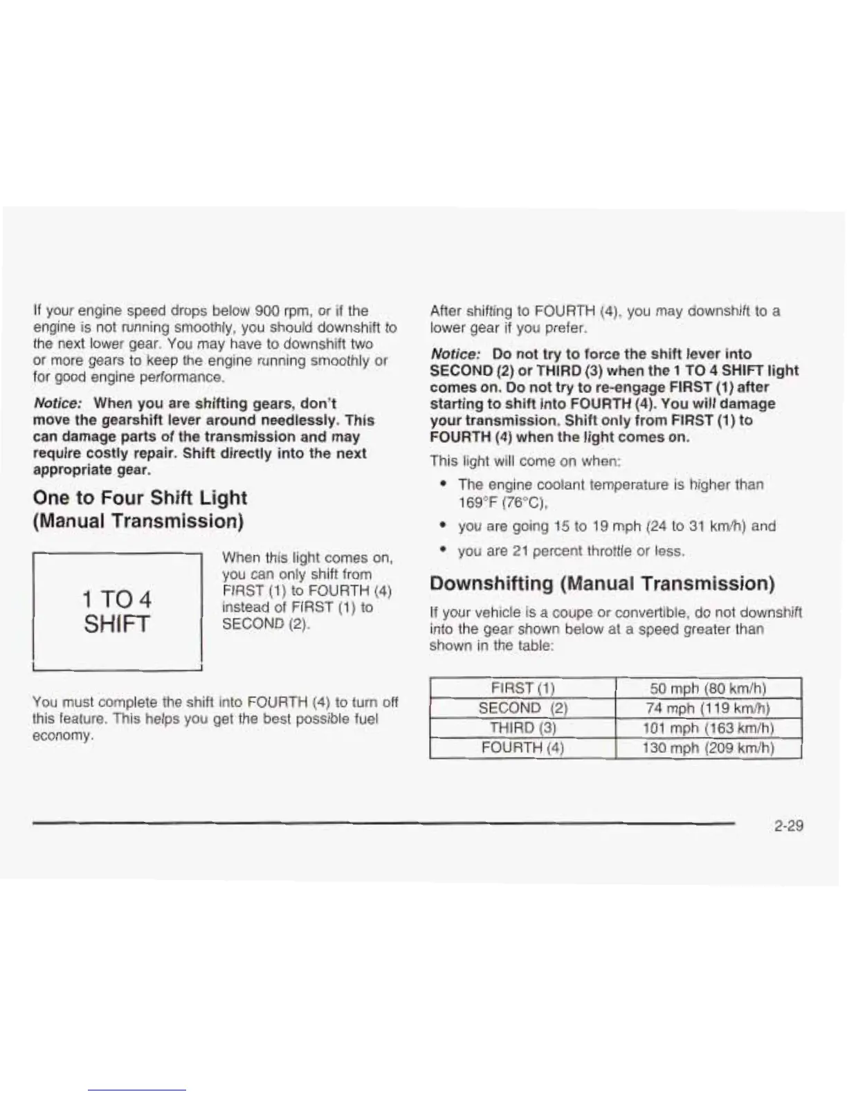 If your vehicle is a coupe or convertible, do not downshift