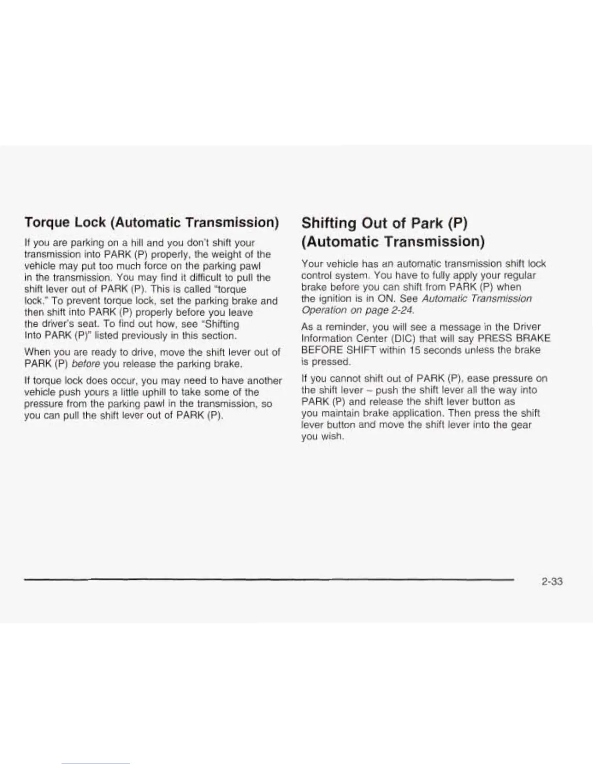 shift lever out of PARK (P). This is called “torque