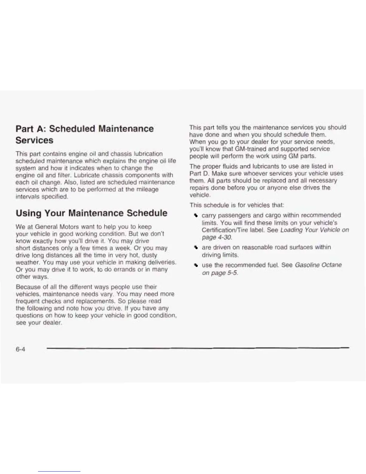 This part tells you the maintenance services you should