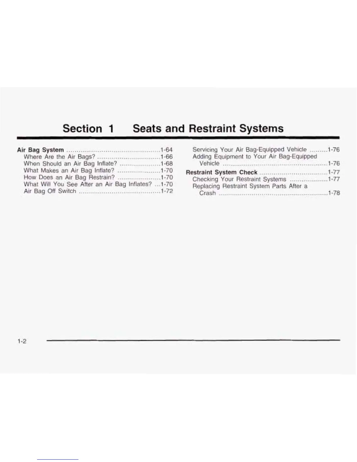 1-64 Sewicing Your Air Bag-Equipped Vehicle