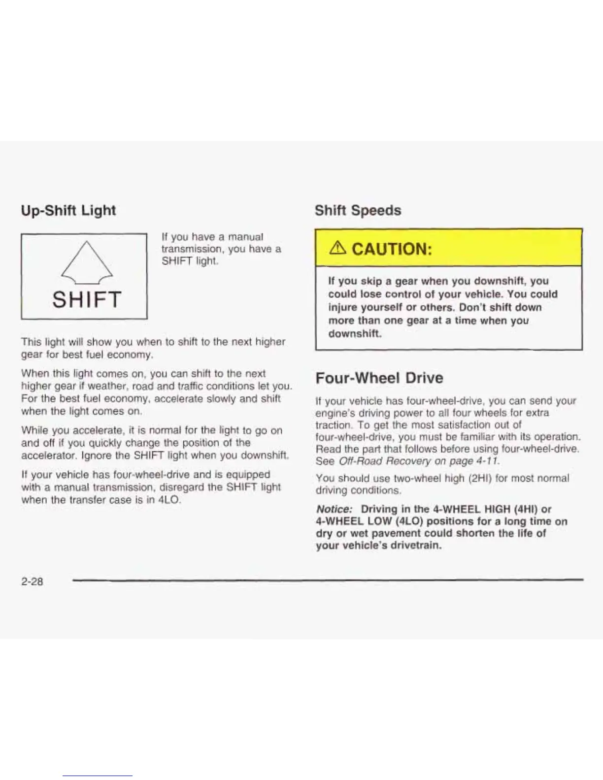 injure yourself or others. Don’t shift down