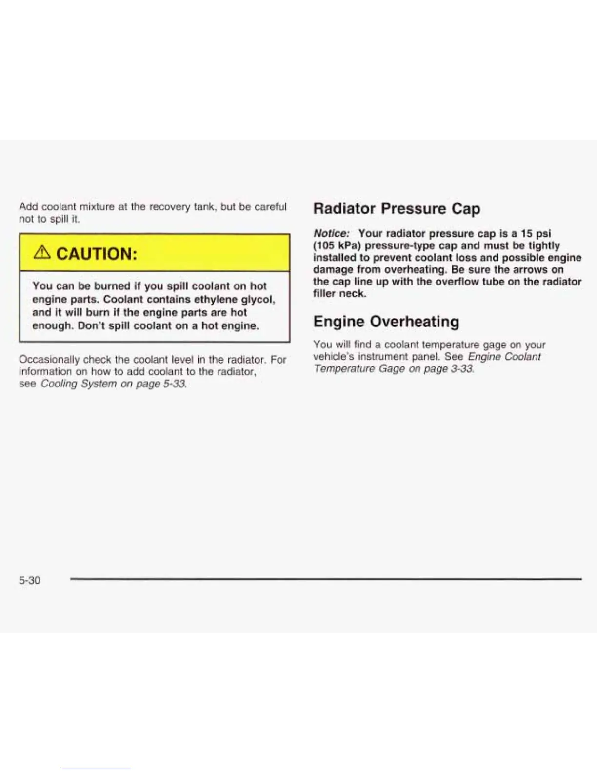 information on how to add coolant to the radiator,