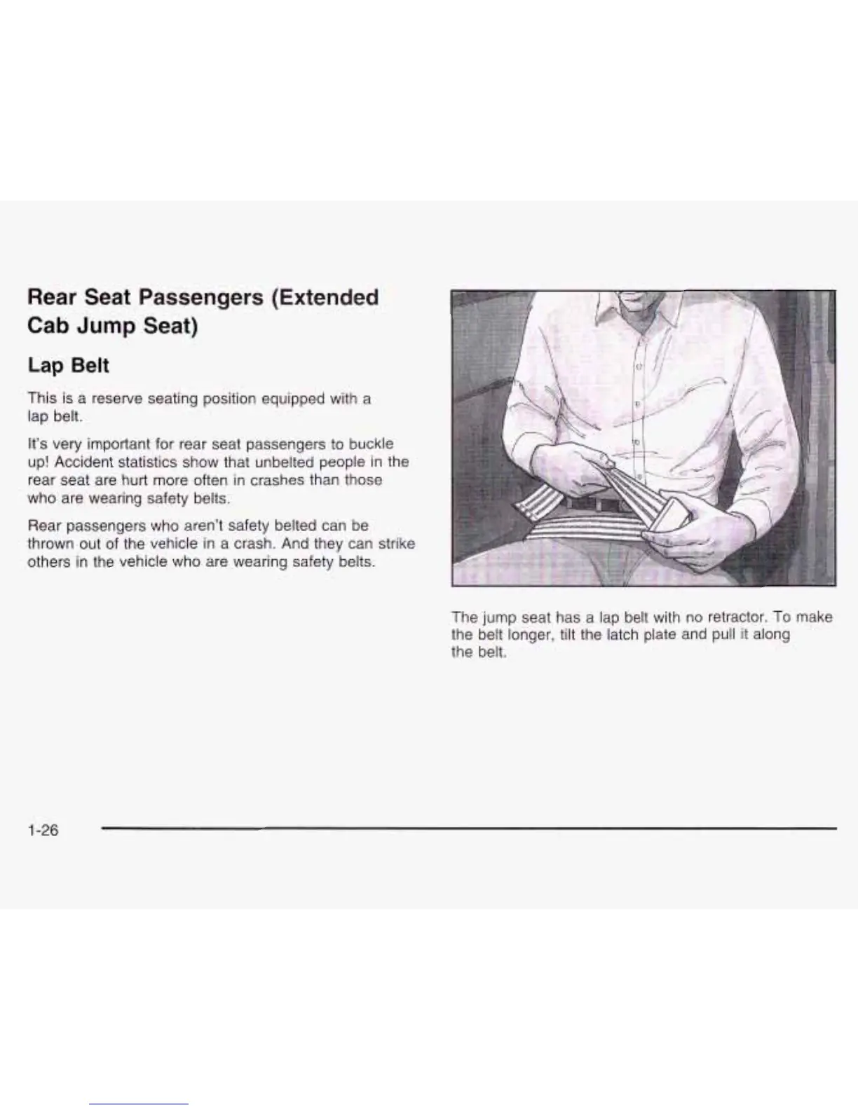 The jump seat has a lap belt with no retractor.