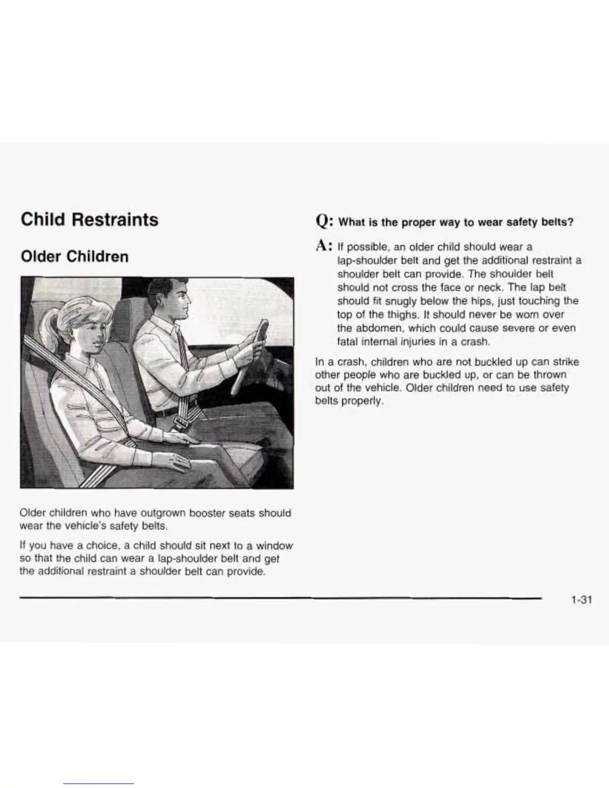 the vehicle. Older children need to use safety