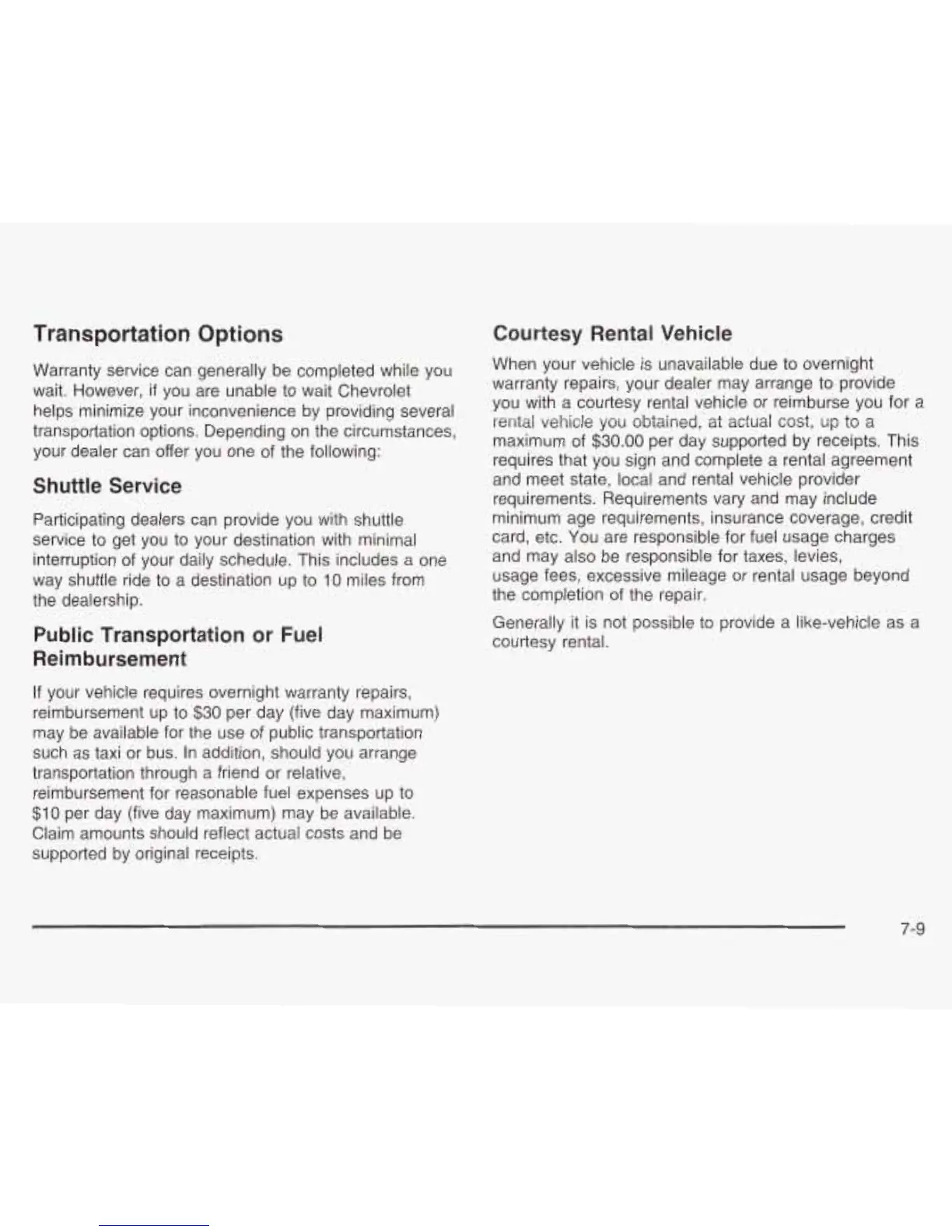 your vehicle requires overnight warranty repairs,