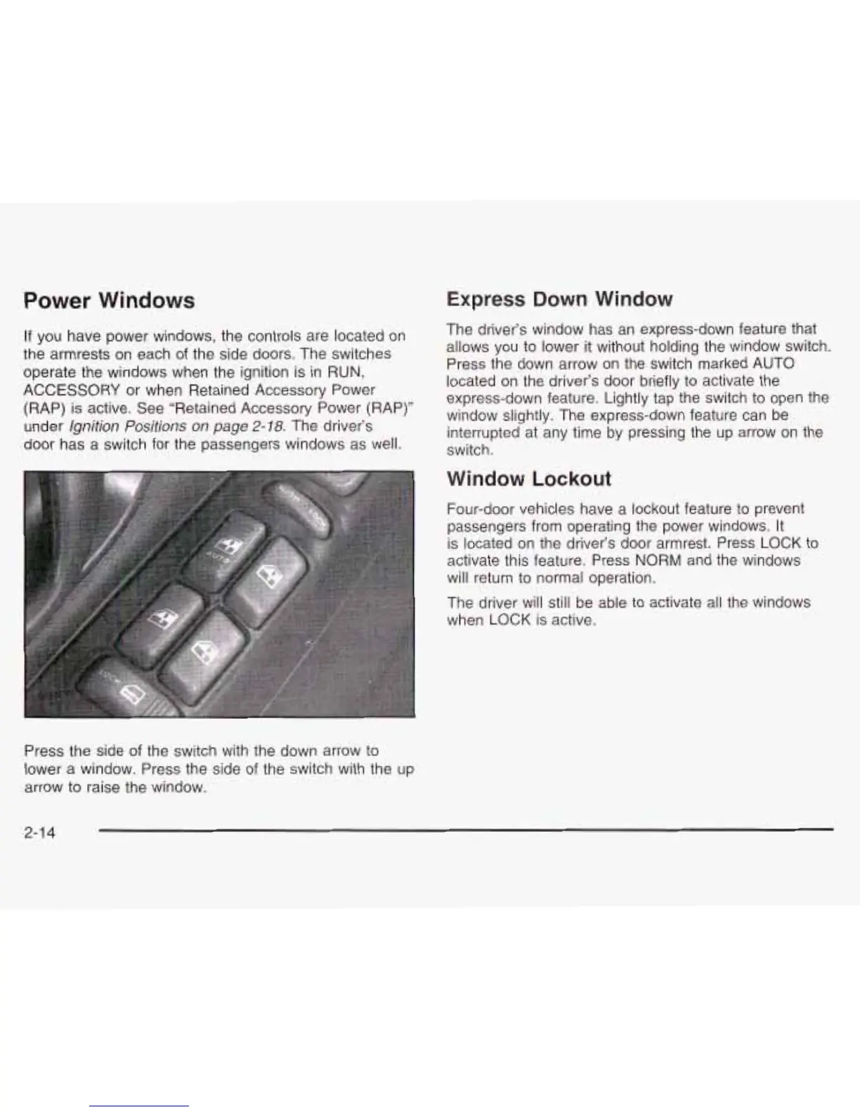 (RAP) is active. See “Retained Accessory Power (RAP)”