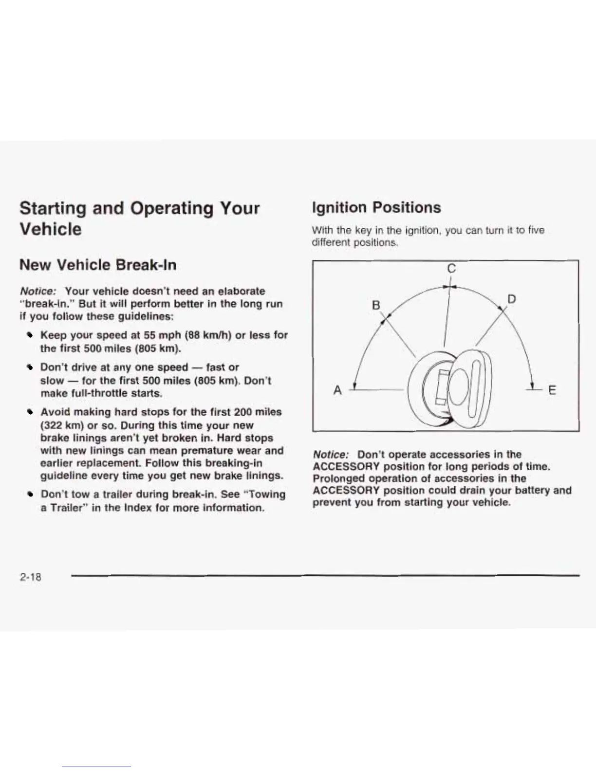 Don’t tow a trailer during break-in. See “Towing