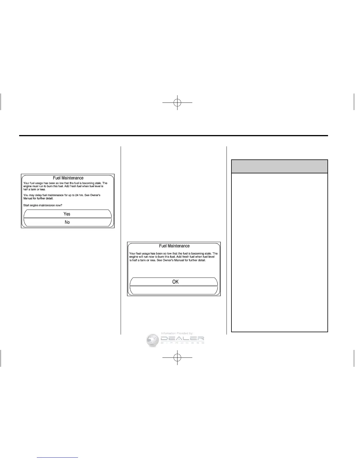 each vehicle start until fresh fuel is