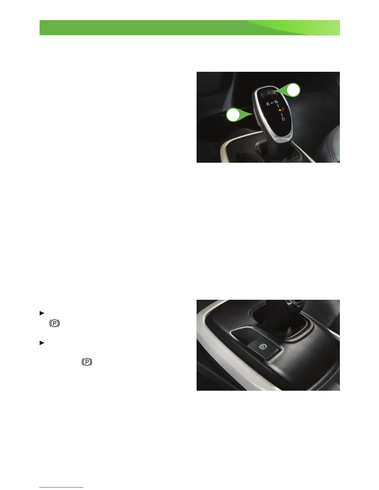 Park – Press the button on top of the lever
