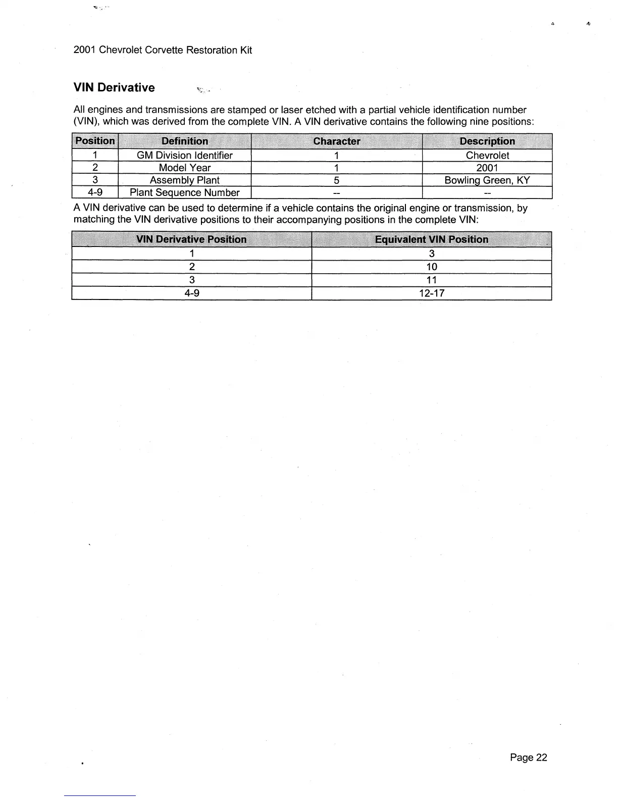 (VIN), which was derived from the complete VIN. A VIN derivative contains the following nine positions: