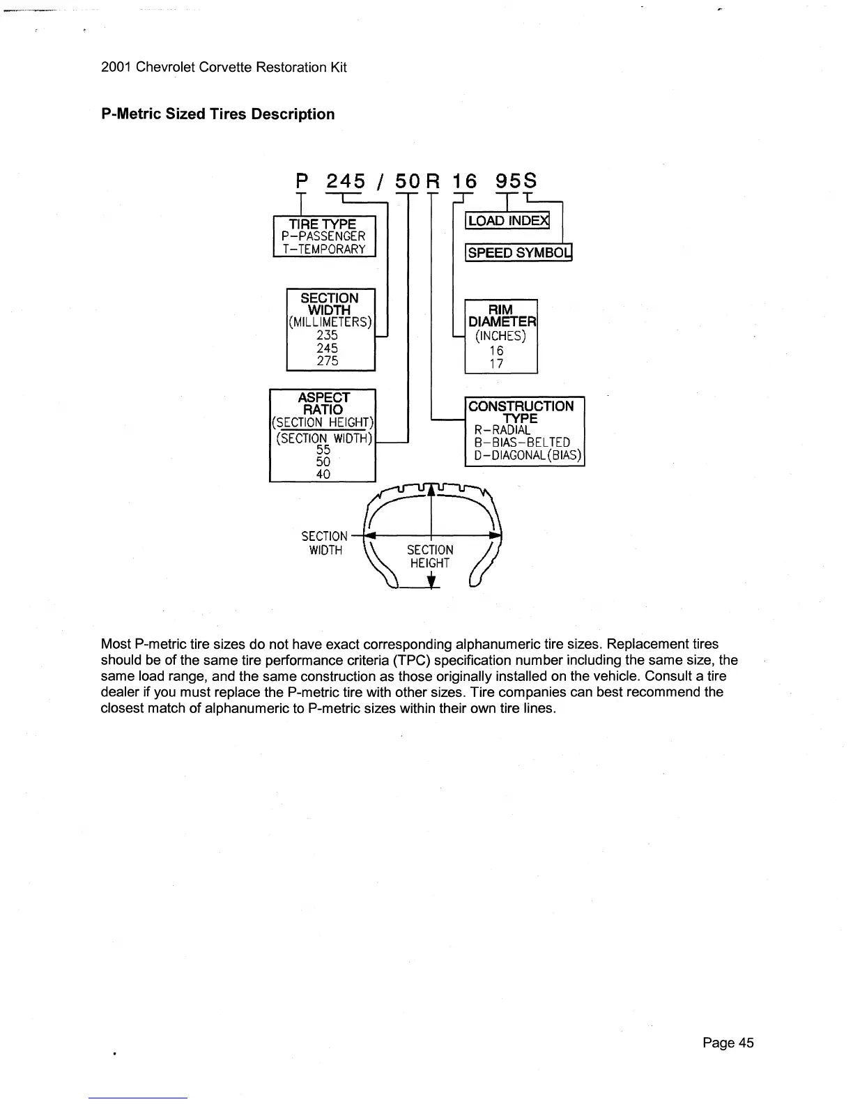 dealer if you must replace the P-metric tire with other sizes. Tire companies can best recommend the