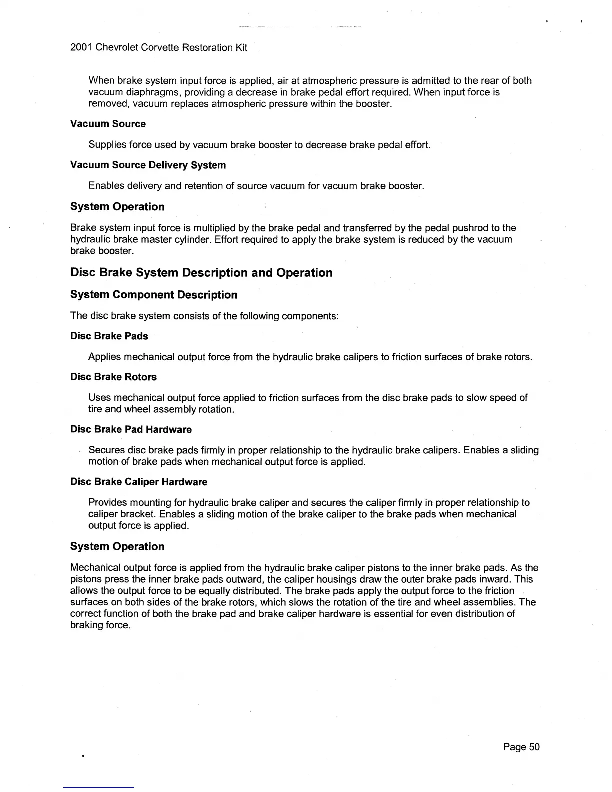 Disc Brake System Description and Operation