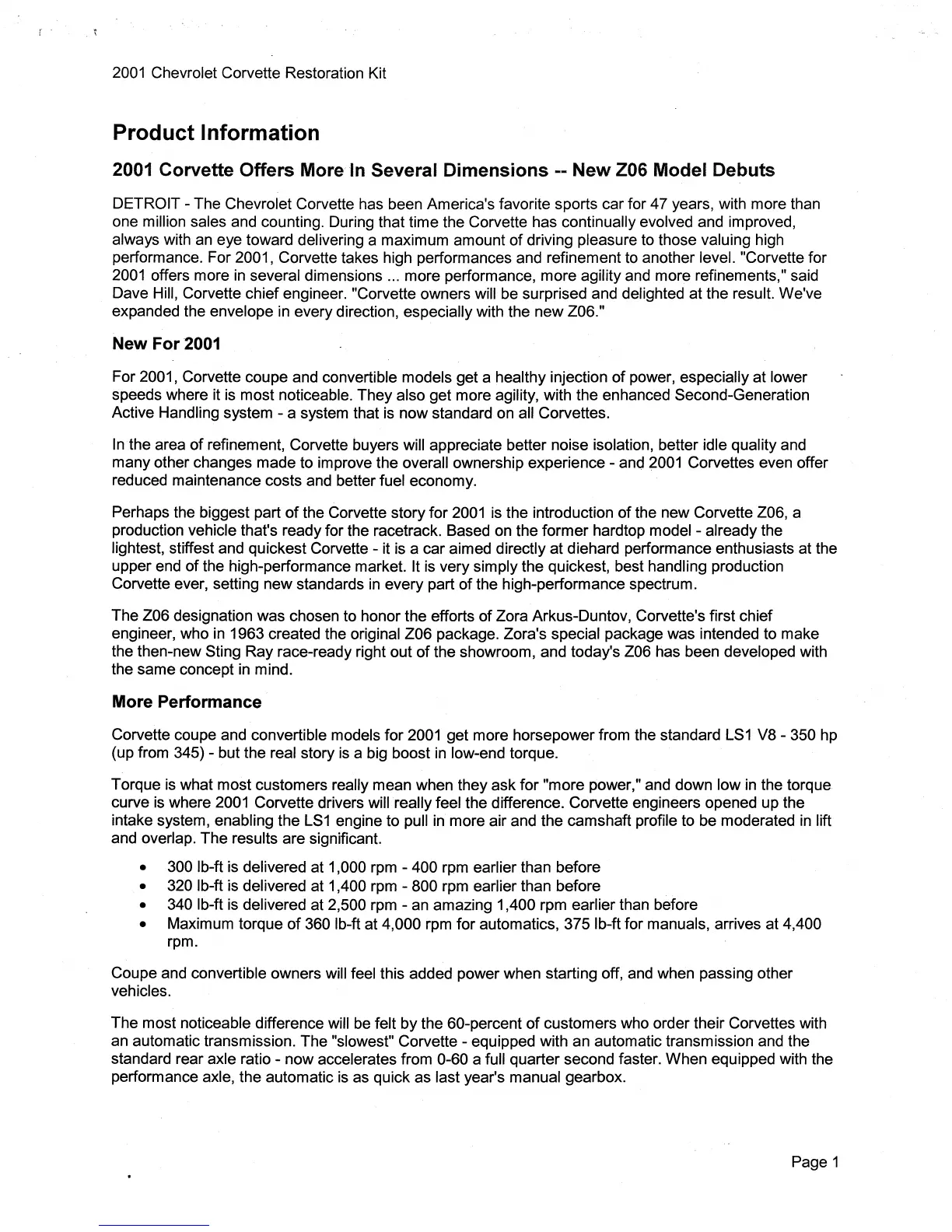 where 2001 Corvette drivers will really feel the difference. Corvette engineers opened up the