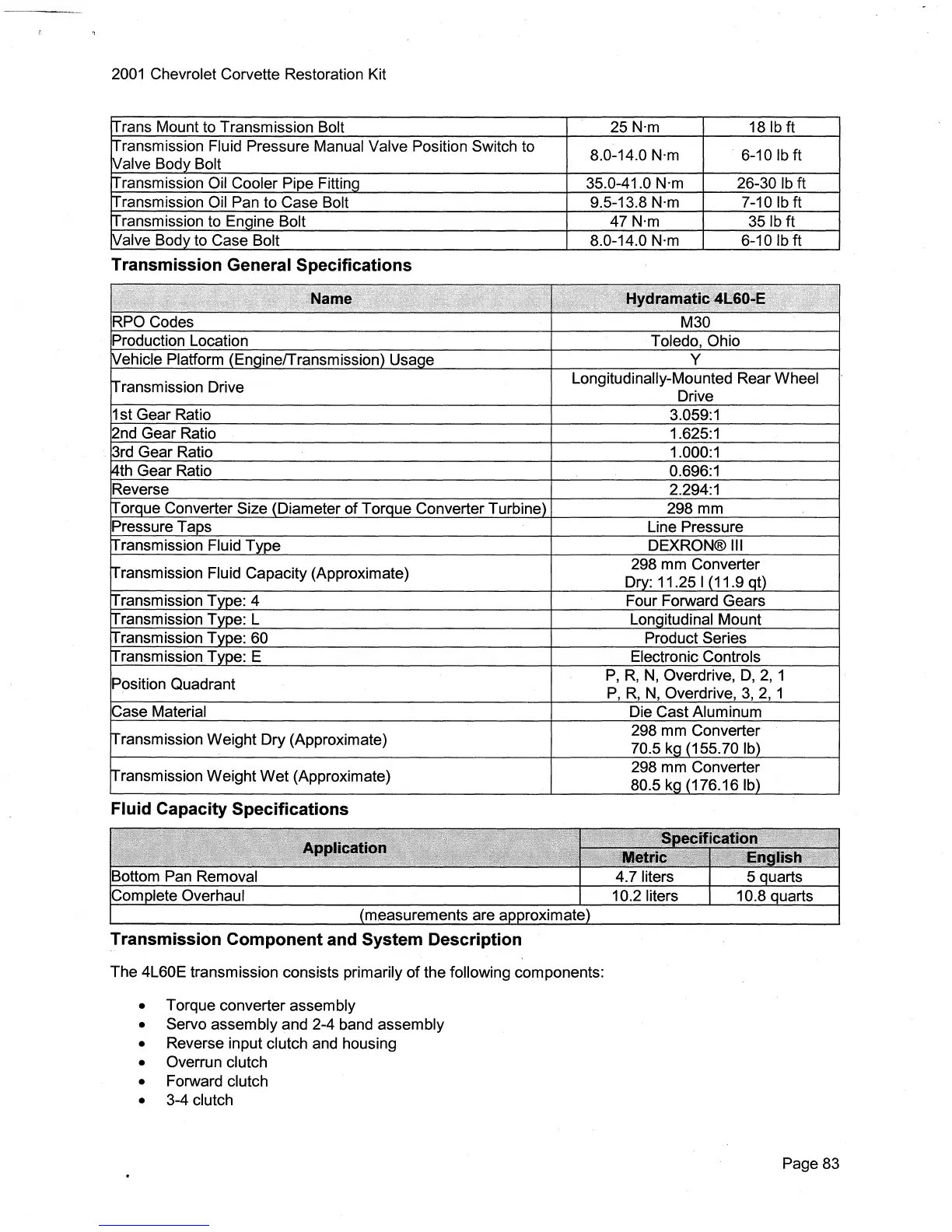 Oil Pan to Case Bolt 9.5-13.8 N·m 7-101bft