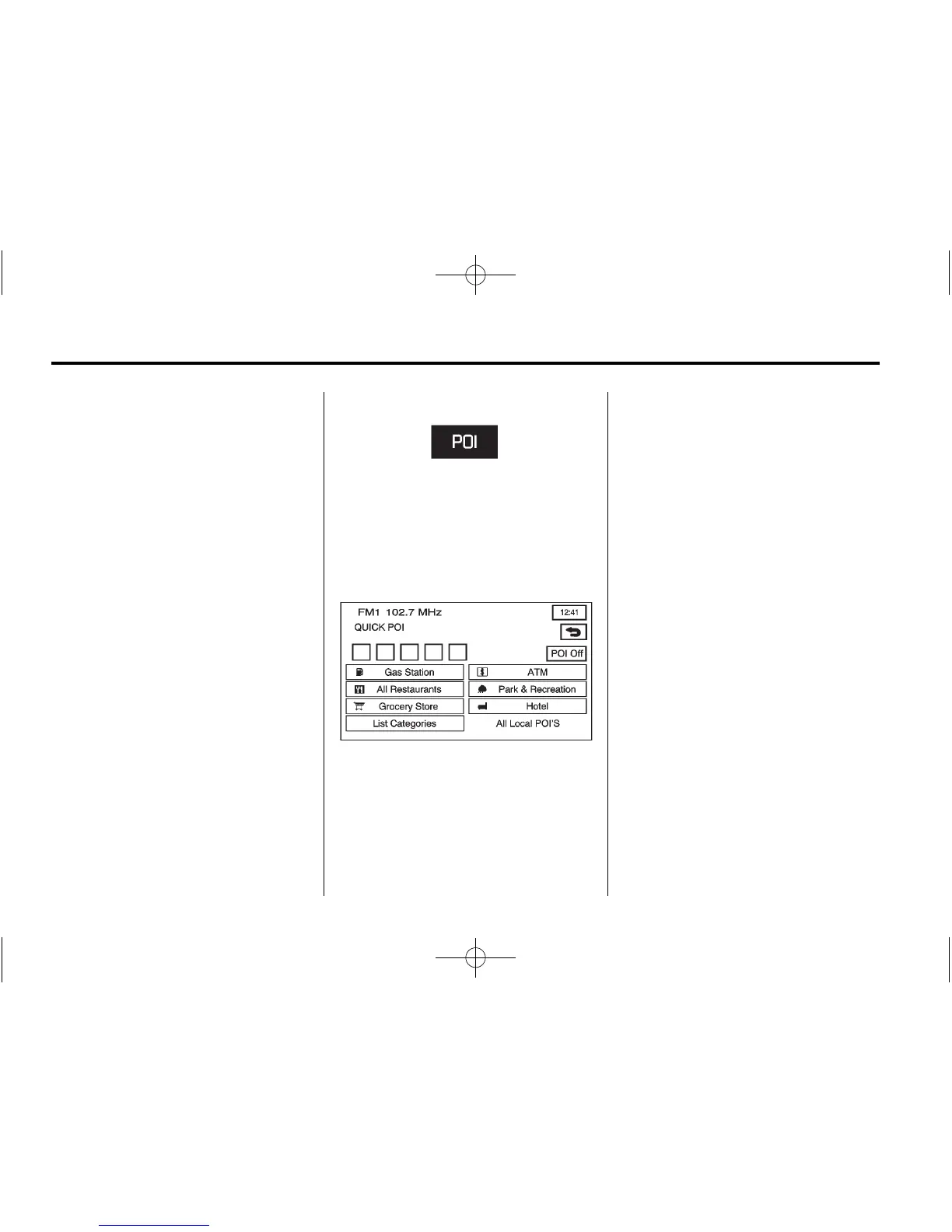 Quick POI screen is available when