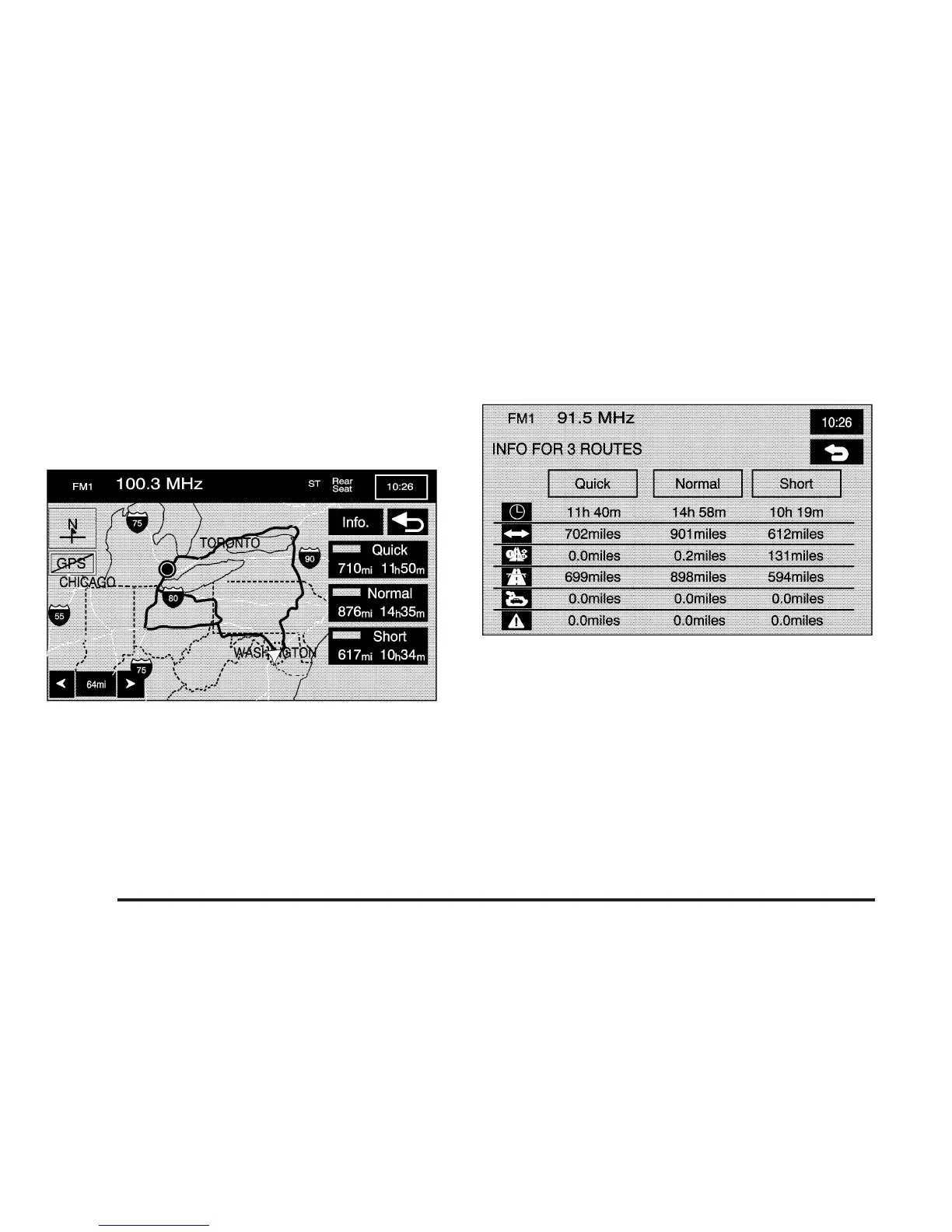 travel time, or select the Info screen button to