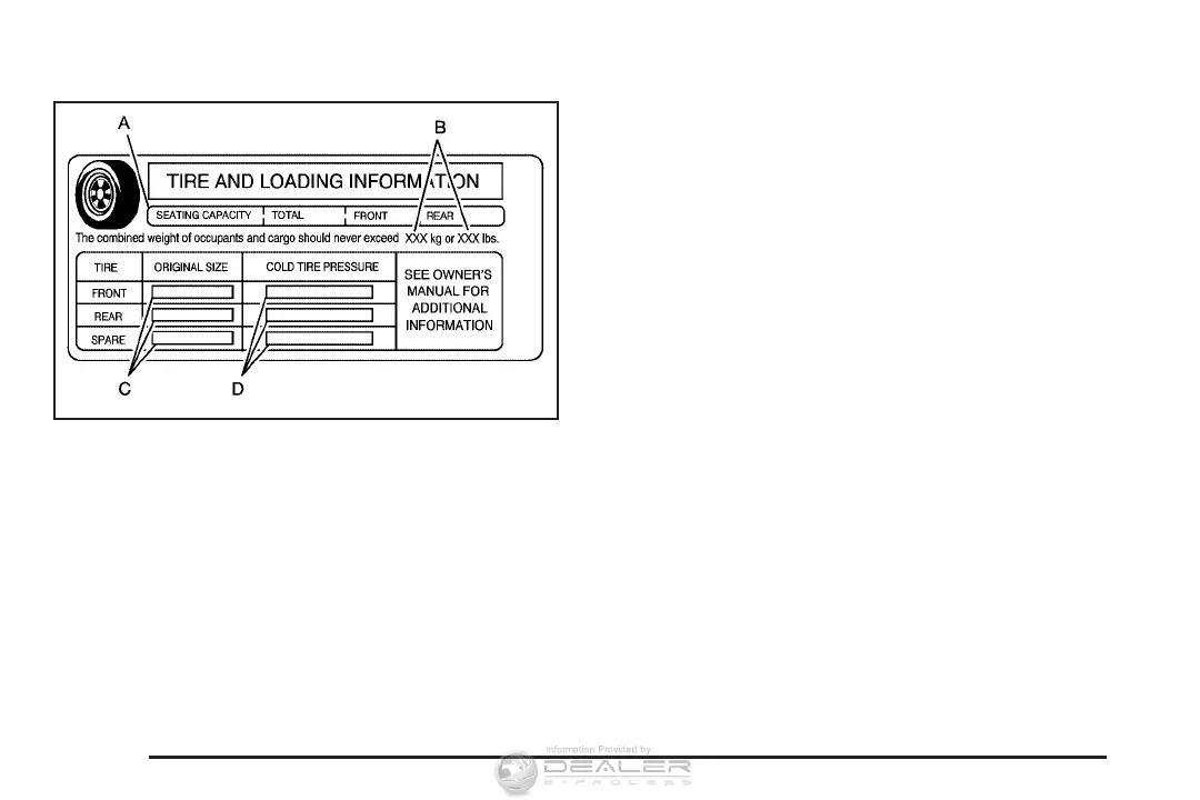 the recommended cold tire inflation pressures (D).