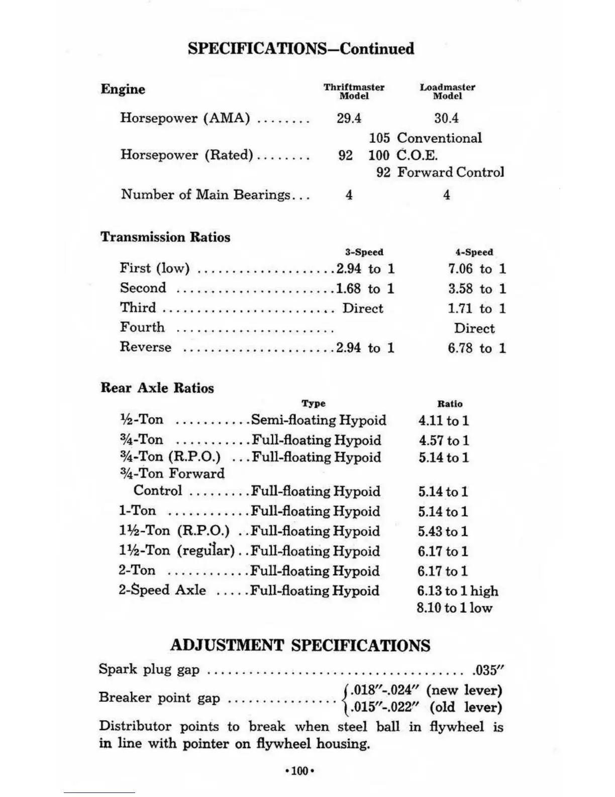 SPECIFICATIONS- Continued