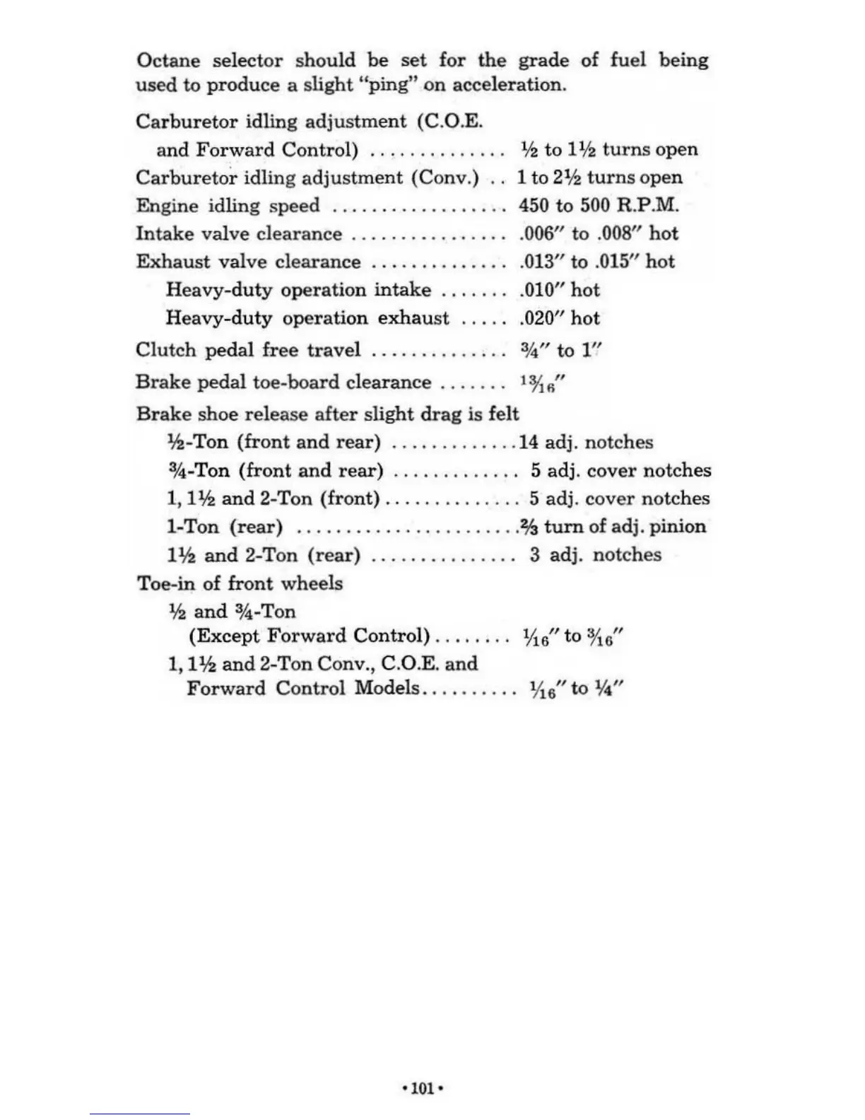 Engine idling speed . . . . . . . . . . . .