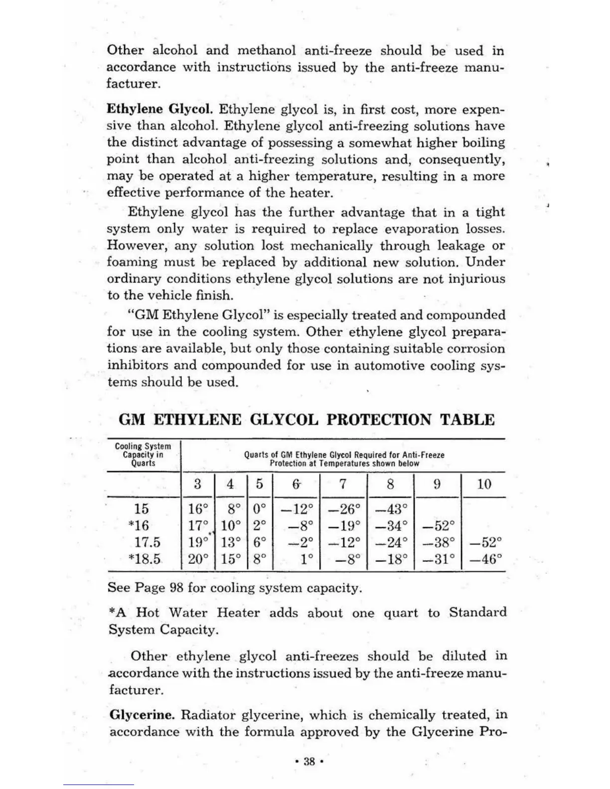 ETHYLENE GLYCOL PROTECTION TABLE