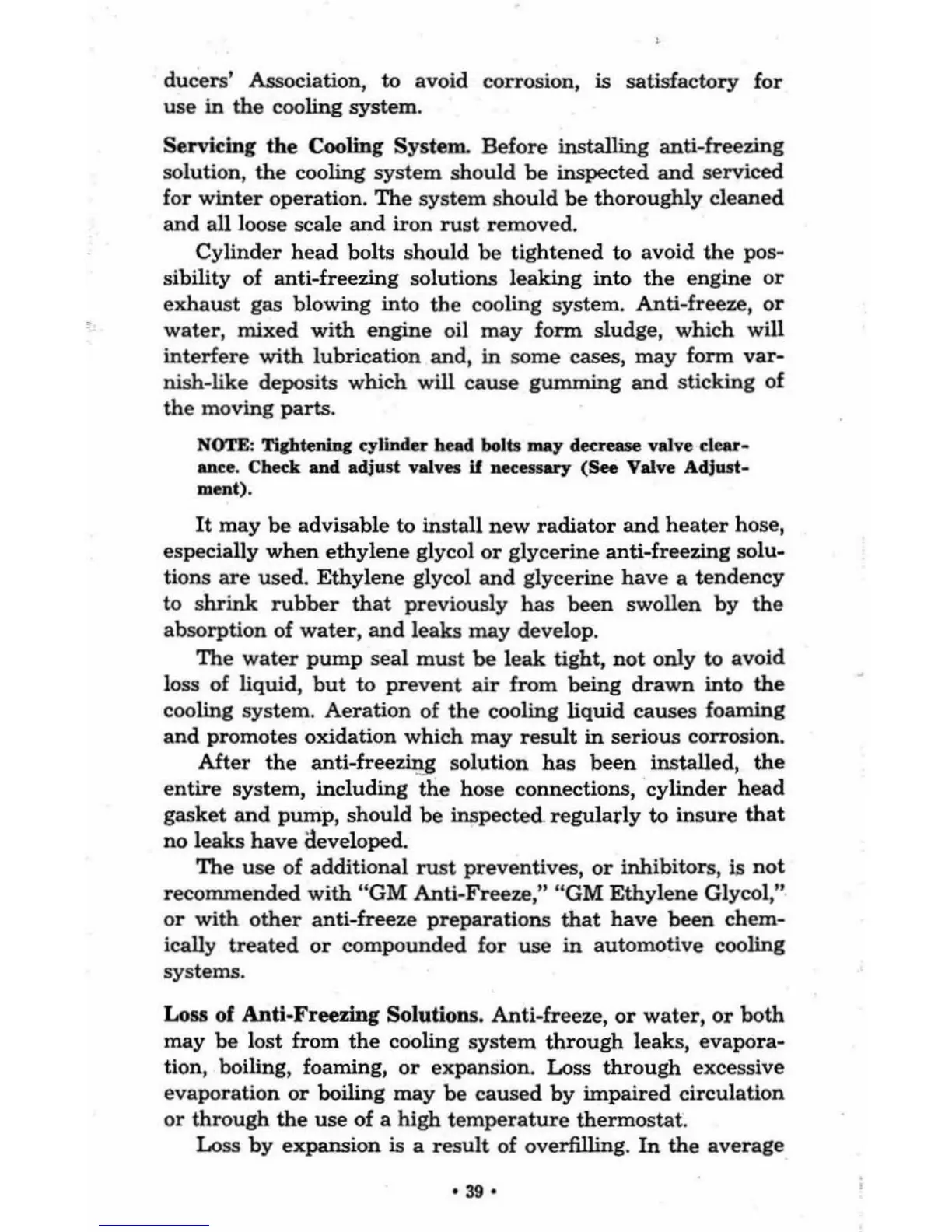 Cooling System. Before installing anti·freezing