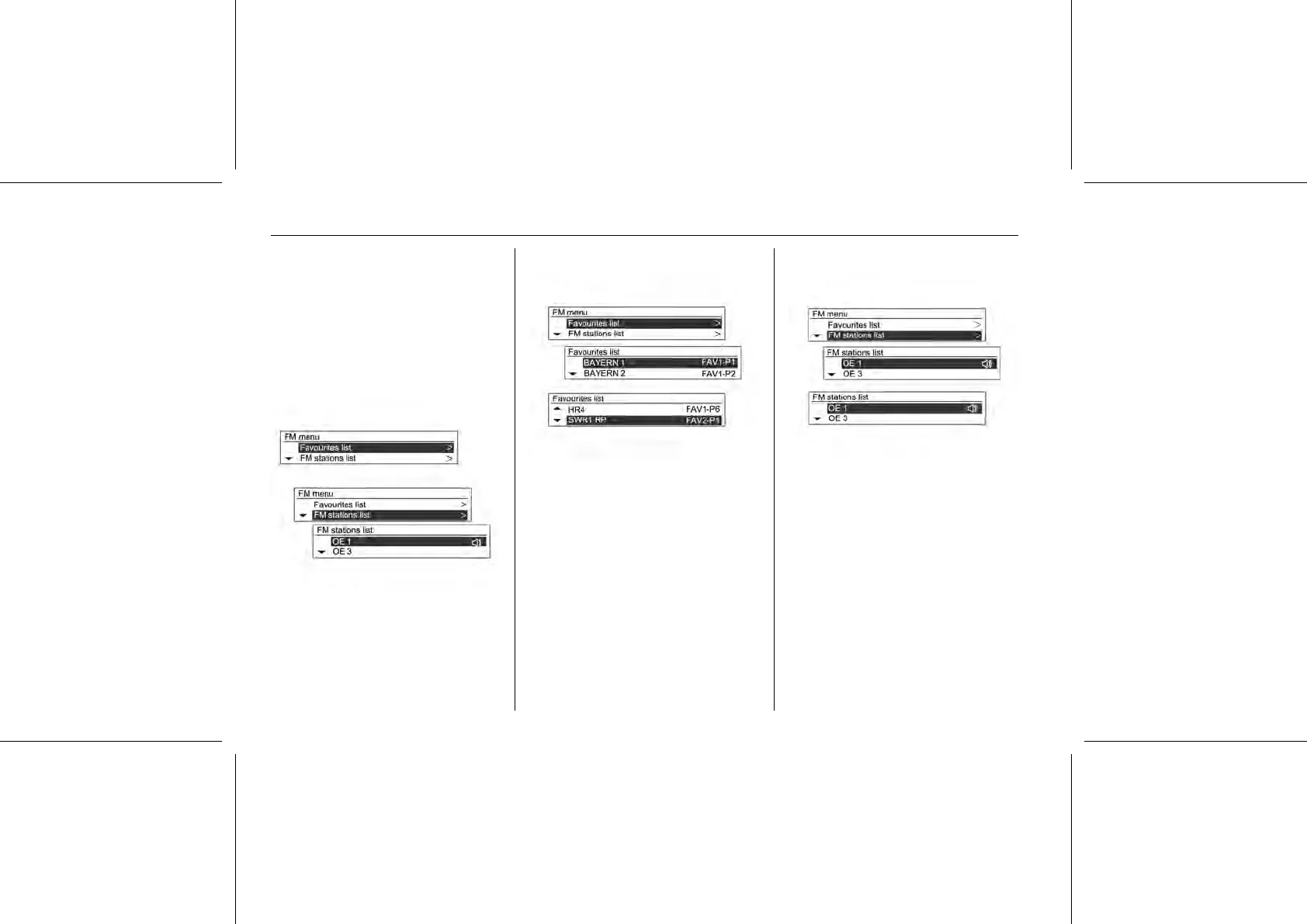AM/FM menu → Favourites list