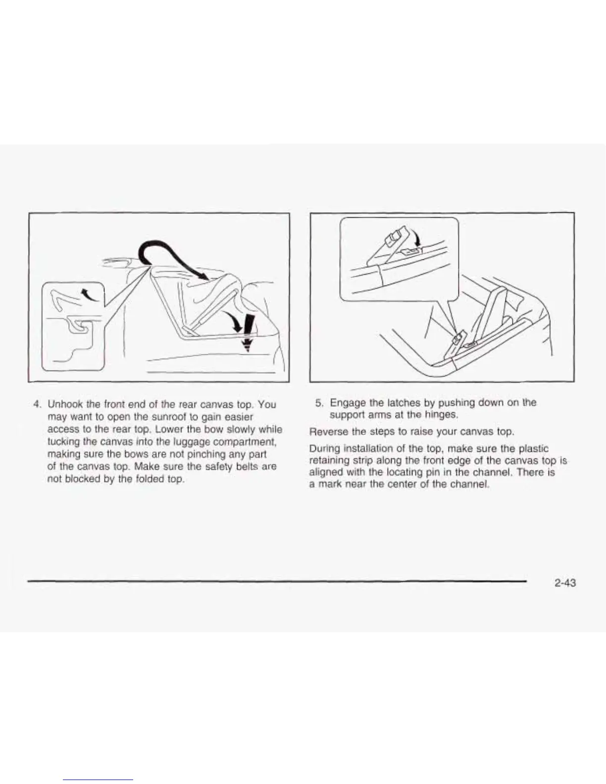 of the canvas top. Make sure the safety belts are