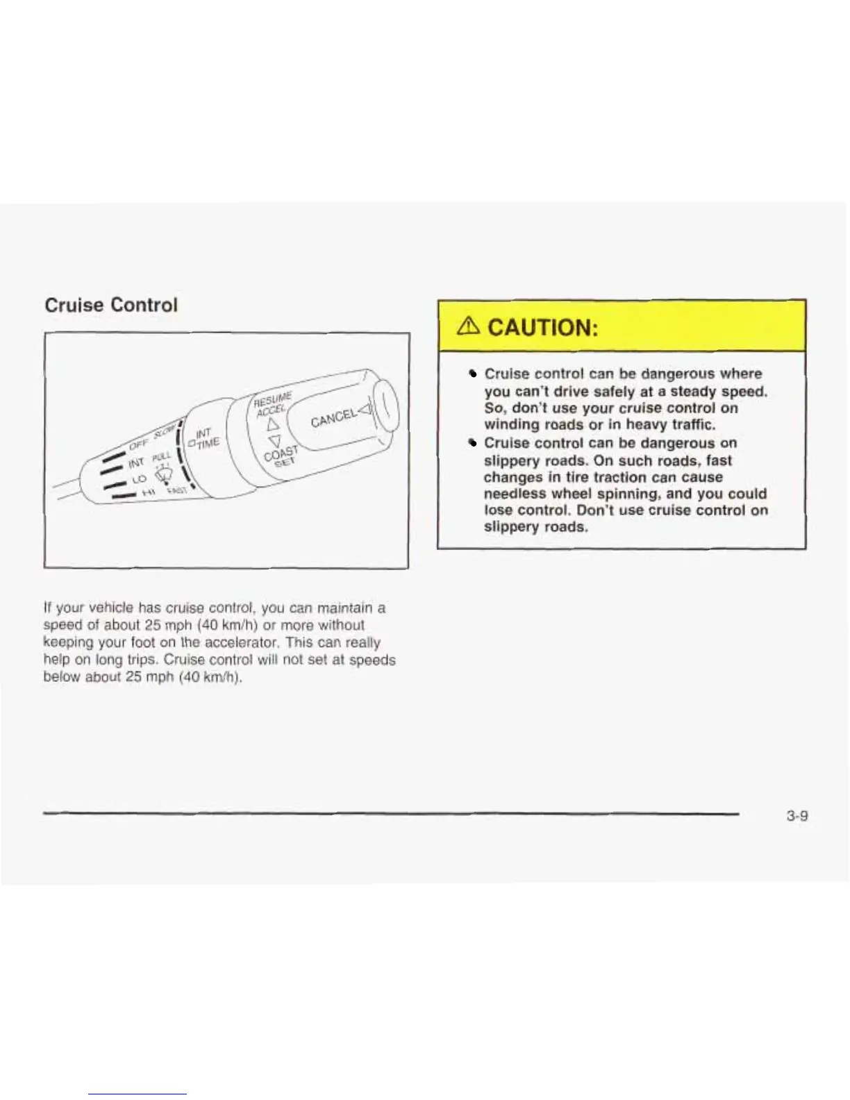 lose control. Don’t use cruise control on