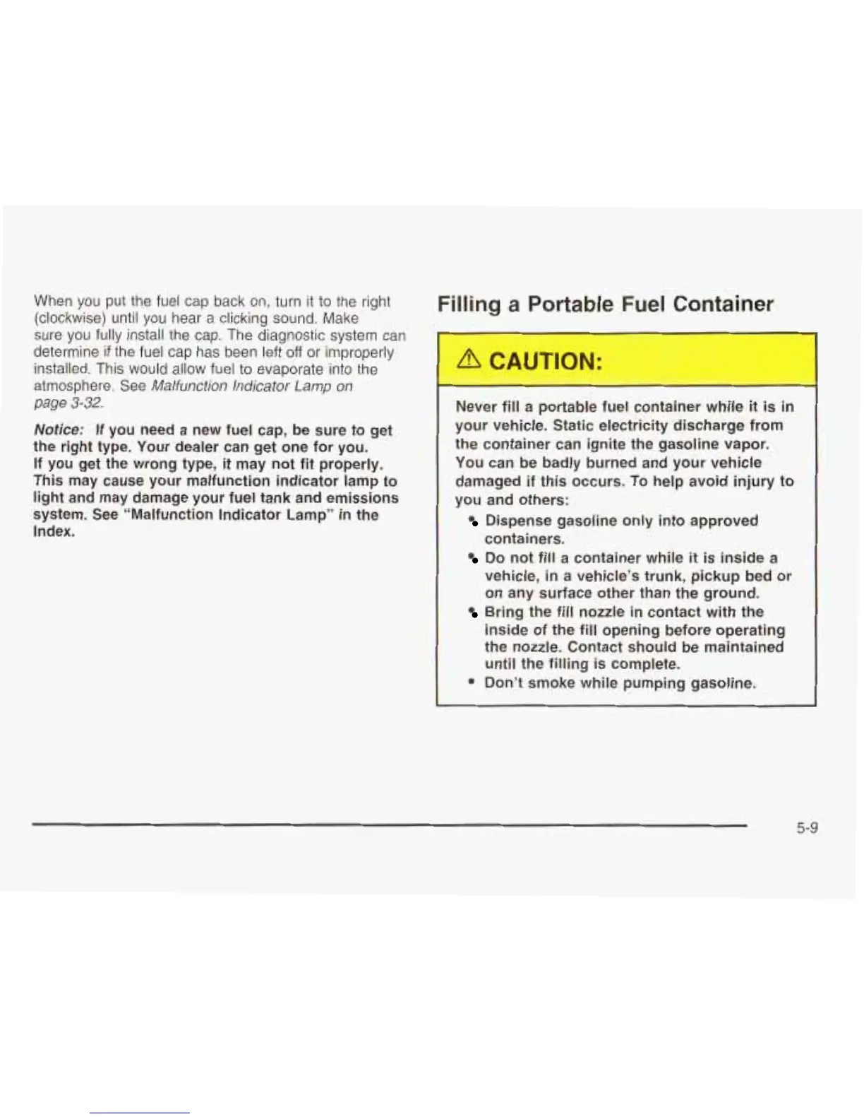 light and may damage your fuel tank and emissions