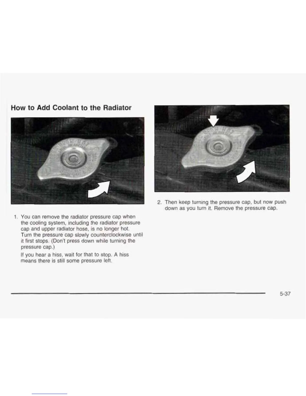 down as you turn it. Remove the pressure cap.
