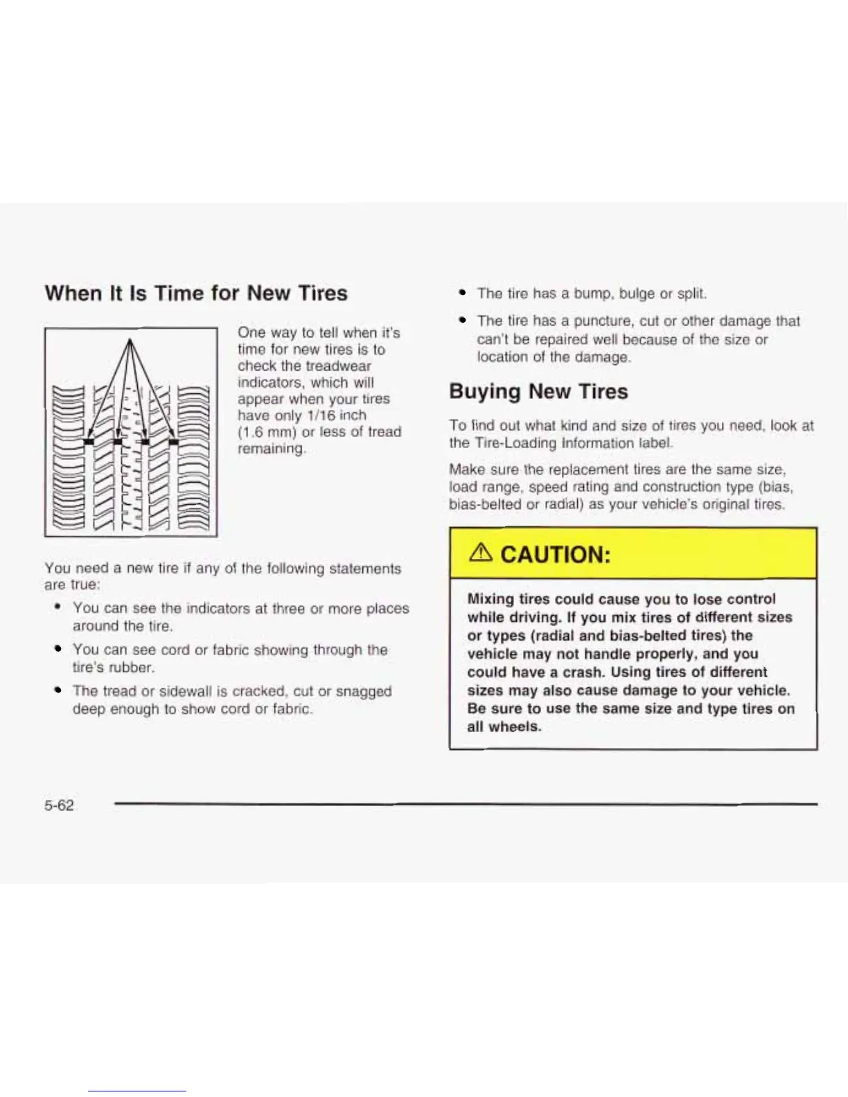bias-belted or radial) as your vehicle’s original tires.